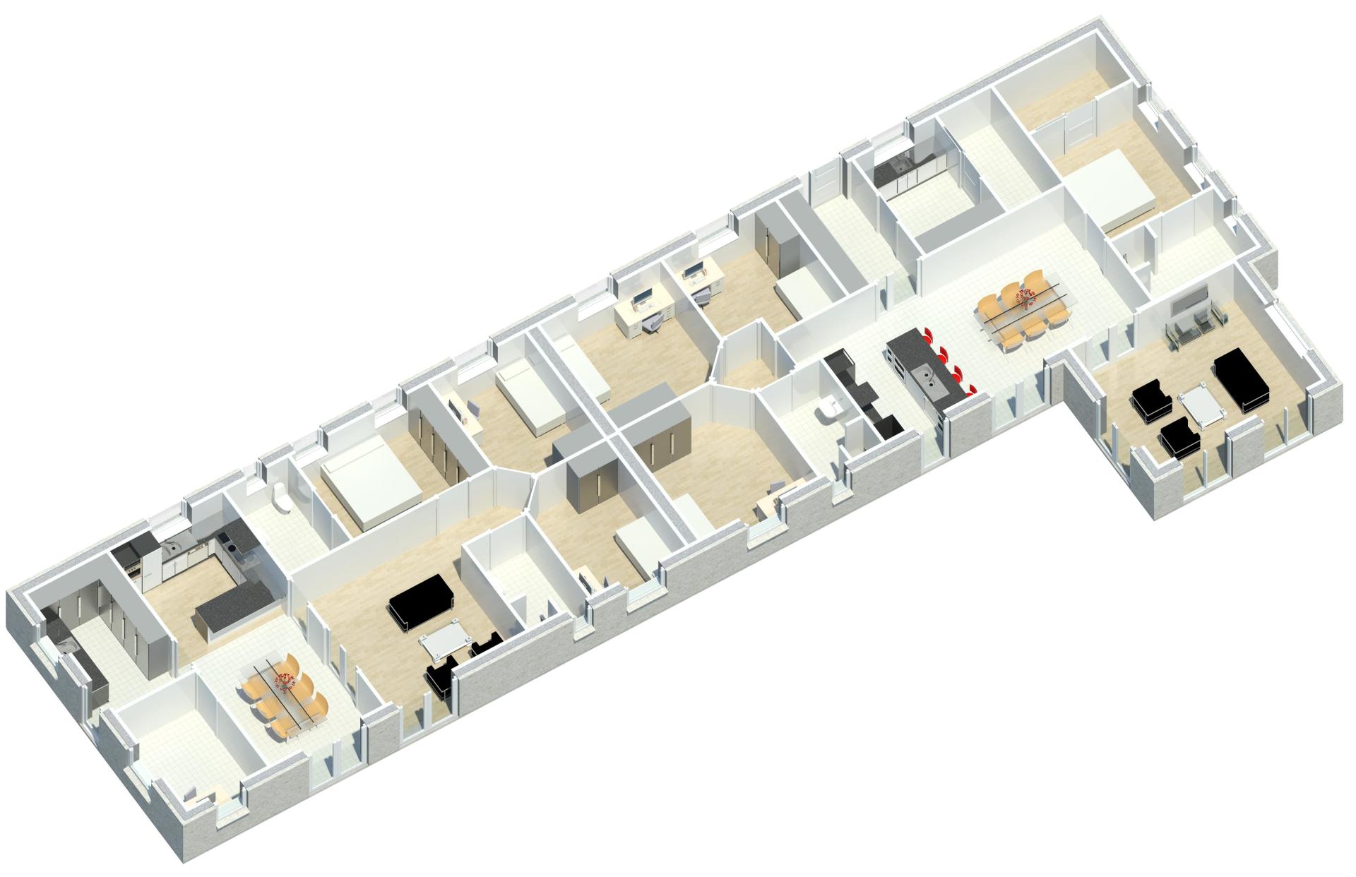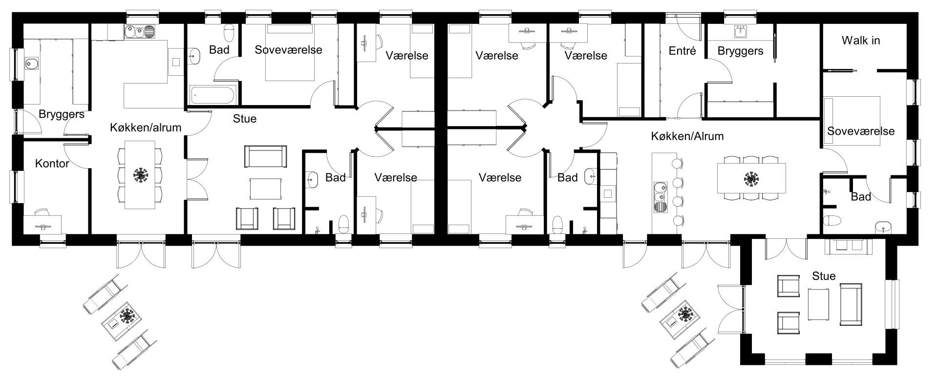 Arkitekt forslag 1/135 Længehus + 1/175 Forskudt Vinkelhus - Dobbelthus