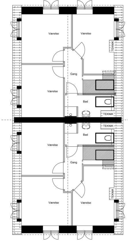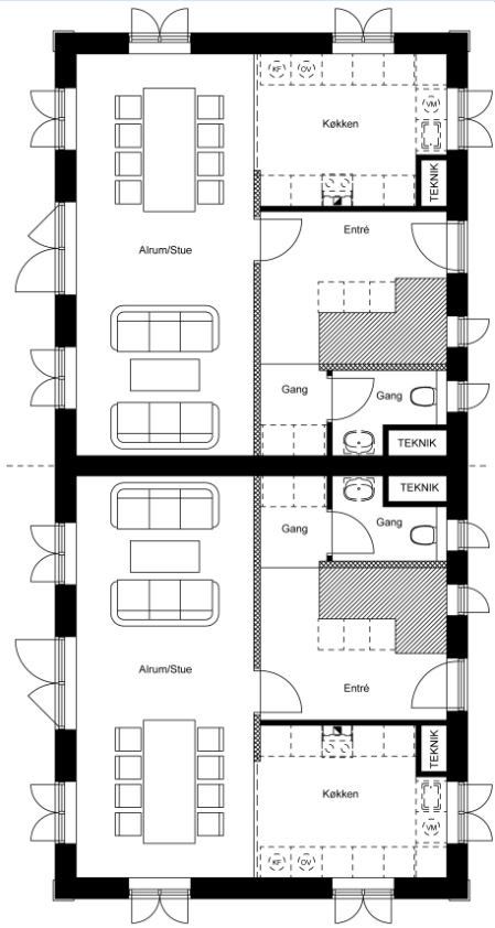 Arkitekt forslag 2 x T/68 + 1. sal med trempel og kælder- Dobbelthus