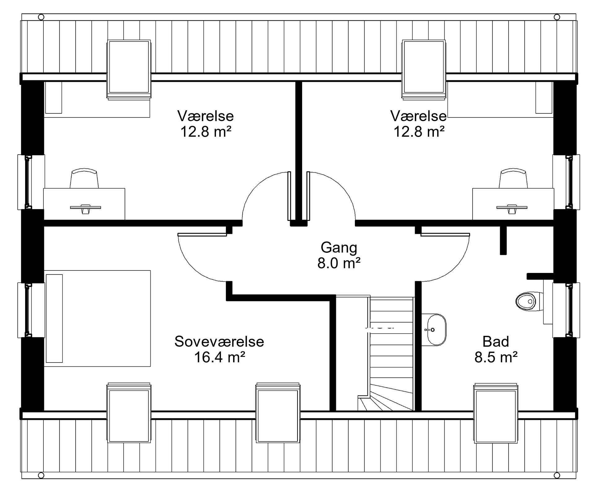 Arkitekt forslag T/85 Tagetagehus med trempel